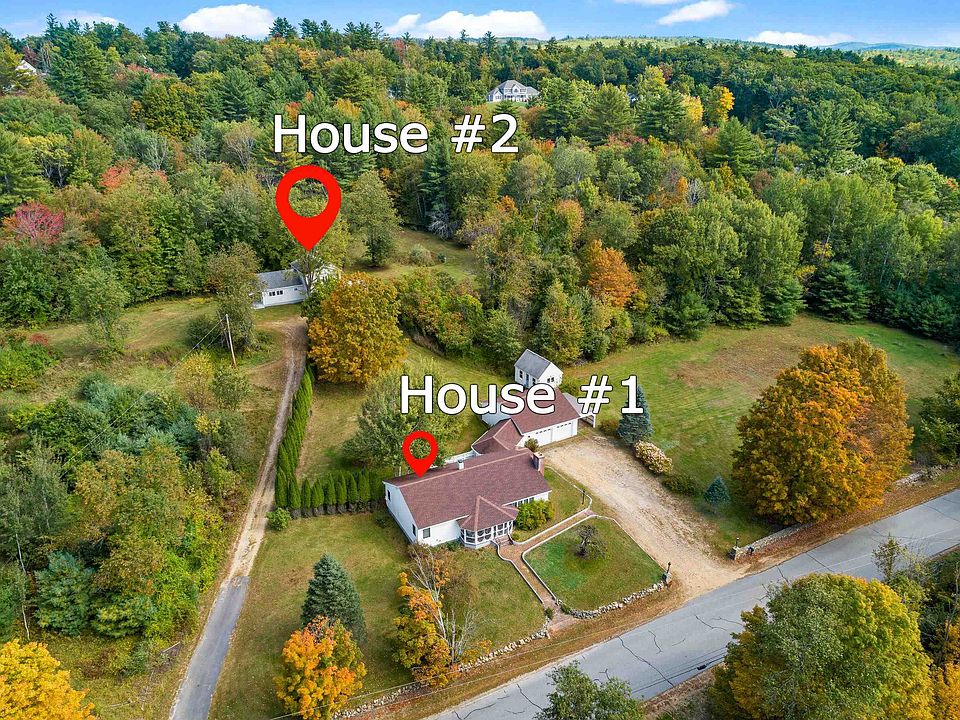 Family compound or a great investment/rental property with sub-division potential on a beautiful 7.8 acre country lot in Loudon with good highway access to 393 & 93 & just minutes from Concord. This property consists of a 1,568 sf RANCH and a 1,680 sf 2-STORY HOME, both privately sited from one another with a nice mixture of woods & lawns to enjoy. The spacious ranch has generous sized rooms with tall perfectly smooth ceilings and wood doors. Step in from the spacious mudroom into a large eat-in-kitchen with plenty of beautiful cherry cabinets & lots of countertops. This well-maintained home comes with a large sunny living room with wood fireplace, a den with slider to the 20’x14’ deck & back yard, 3 nice sized bedrooms, a full bath, & an attached 29’ deep garage that can hold up to 4 vehicles as well as an attached carport & a small outbuilding. The 2-story home in the rear of the property has its own driveway, septic system & separate electricity. This home offers a sunny kitchen, a dining room with hardwood floors & wood stove hookup, a 24’x20’ cathedral ceilinged living room, also with hardwood floors, 2 bathrooms & 2 bedrooms. Off the living room is a covered porch to enjoy the tranquility of the private back yard & the woods beyond. The front yard offers even more room for family fun, veg gardening etc. With 775 FT OF FRONTAGE, subdividing this lot into 2 or 3 lots is a possibility. SHOWINGS STARTS ON 10.8.22