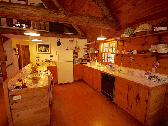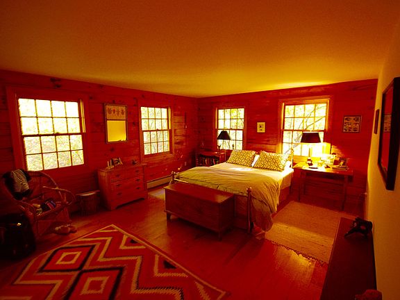 Artist Retreat along the edge of the Berkshires. This thoughtfully designed log home sits in secluded tranquility between the Berkshires and the Pioneer Valley, yet moments to the areas premiere cultural attractions. With 6 quiet acres and your very own sparkling stream curling through the forested property, one can hike, swim or peacefully reflect within this pristine setting.