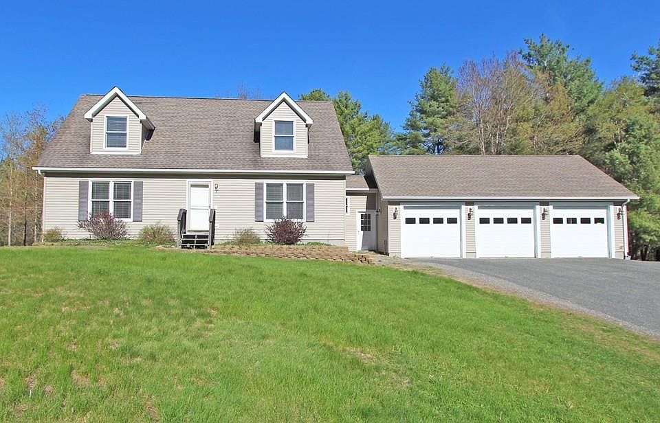 Open house Sunday, 9/8 from 12 to 2! Motivated seller! Country living at its best, this impressive 3-4 bed, 2 bath expanded cape on almost 10 acres complete with a small shared pond. Home features hardwood floors in common areas and oversize windows that flood the home with natural light. Large kitchen and adjacent dining area open by glass sliders to 12'x26' deck overlooking the yard and woods. Also on the main level are 2 large bedrooms and a full bath. The 2nd floor features large master suite with walk-in closet and bath with jetted tub and glass shower, as well as a possible 4th bedroom. The living is easy with brand new roof on house, 3-car attached garage, and Buderus heating and H20 system. Play and garden in the open lawn, explore the woods and miles of snowmobile and hiking trails just out the back door, or relax on the spacious deck! Approx. 20 minutes to Northampton & the highway. Please see remarks other/firm remarks for GPS location error.
