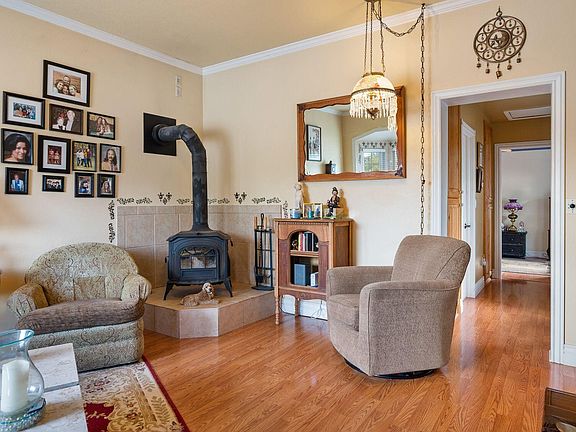 This beautifully remodeled 1885 home is a stunning piece of real estate. The historic charm of the original architecture has been seamlessly blended with new updates and finishes. The home has been wood wrapped with Styrofoam for extra insulation then vinyl siding. The layout features multiple bedrooms and a bathroom, perfect for family or hosting guests. The kitchen boasts great appliances, custom kitchen cabinets that go from floor to ceiling, and plenty of counter space for meal prep. The backyard is large, and ideal for relaxing and entertaining. The detached garage offers space for 3 cars, a workshop, and extra storage space. Part of the garage has been converted into a food storage space perfect for storing food for a long period of time. (see photos) (SEE MORE) The wood fireplace, furnace and the commercial type swamp cooler offers plenty of heating and cooling throughout the house. The home also features a brand-new furnace, water heater, and roof. The sprinkler system water supply hookup connection is stubbed in but has not ever been operated. With its prime location and unique character, this home is a must-see for anyone in the market for a one-of-a-kind property. *Buyer to verify all information.