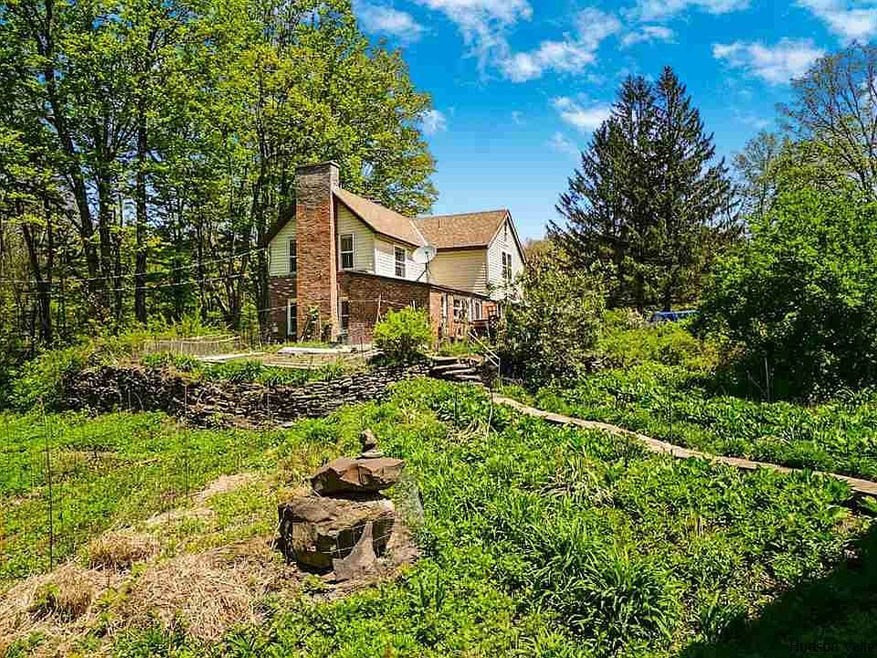Total privacy. One town maintained road in, and that same one out. Together with the fact that you have 500' of the Catskill Creek here, lying well enough below the house to be enjoyed and not be a problem, makes this a very special property. For the botanist, this is a heaven - more varieties of both regular and hard to find perennials than you can imagine, and when you enter the house there are tall ceilings, hardwood floors..... The enclosed deck is a magnificent place to sit and enjoy dinner by candlelight without being bothered by bugs, whilst gazing at the creek flowing by below....A lot of house for the money and a location rarely discovered.
