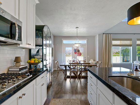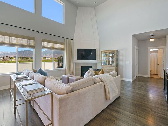 This home has some very unique qualities 1) stunning views of farm land, & Mount Timpanogos, 2) land behind home is zoned to be a park, and 3) you can't find better neighbors/neighborhood. This neighborhood will instantly become any family/kids dream. There is 5 bedrooms (1 on main / 4 upstairs), & 3 full bathrooms (1 on main / 2 upstairs). The basement is unfinished but has plenty of usable space (gym, storage, etc). Includes 3 car garage, office on main, and mudroom. House is like new!