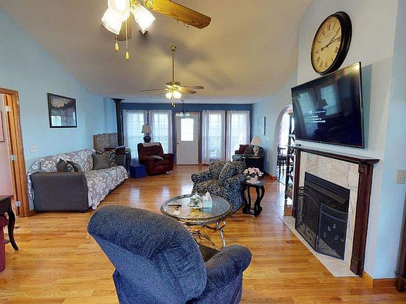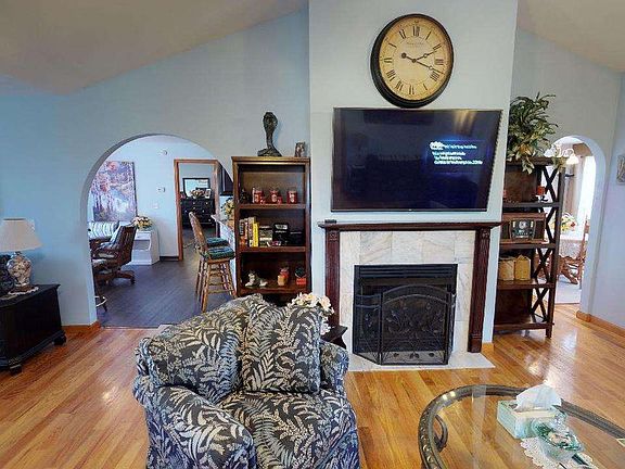 One level living at it's finest. This custom designed and built 3 Br, 3Ba in St. Clair Estates. Enjoy the gas fireplace on one side of the living room or the wood burning stove on the opposite of the large family living area. Each room flows wonderfully to the other through arched doorways. Hardwood floors, granite countertops and an amazing view! All appliances stay. Sit back and watch the sun come up on the sun porch. Peaceful and charming neighborhood. The additional lot gives room for family fun outdoors. Additional detached garage for additional storage/garage space.