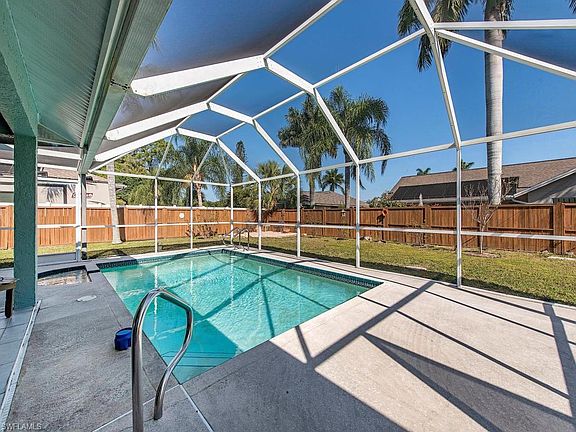 Beautiful Pool Home built in 1990 located in a quiet part of Palm River with a fenced in backyard for privacy and entertaining. The pool and hot tub invites for soaking and sunbathing. The home is well maintained with tile floors in the main area and carpet in bedrooms, plantation shutters in every window, the metal roof is only 6 years old and the AC which is 6 years old is getting serviced and cleaned every 6 months. Bring your personal touch to this home and enjoy Naples Lifestyle with No HOA fees.