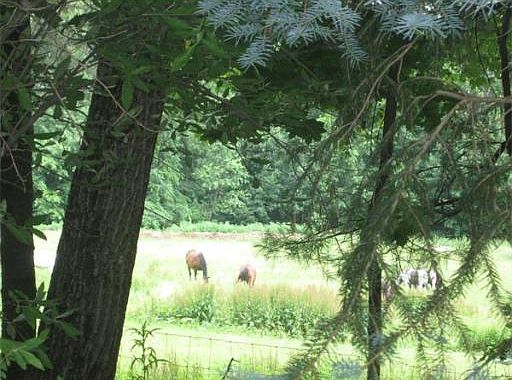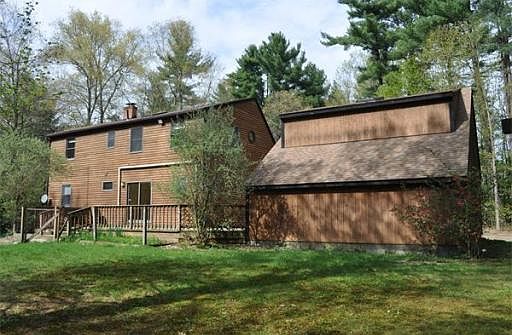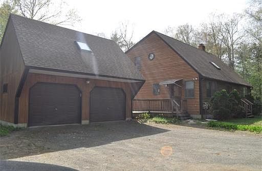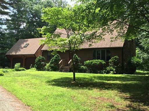 MOTIVATED SELLER says bring me an offer. PRIVATE lot is well off the road. This Cape is in move-in condition set off the road with over 4 acres of mostly wooded land. Watch the horses romping in the fields that adjoin this home. Spacious living room with cathedral ceilings and wood stove, 3 Bedrooms, 2 full baths, eat-in kitchen & dining room, 1st floor laundry room, office and large, basement family room. The oversized 2 bay garage with second story that is insulated, has a skylight, and could be finished space. Freshly painted interior, new flooring in many rooms, security system, central vac, & more. Large deck with awning is perfect for entertaining. On the West side of town with easy access to Amherst, shopping and services. Perfect home for buyer looking for a turn key move.