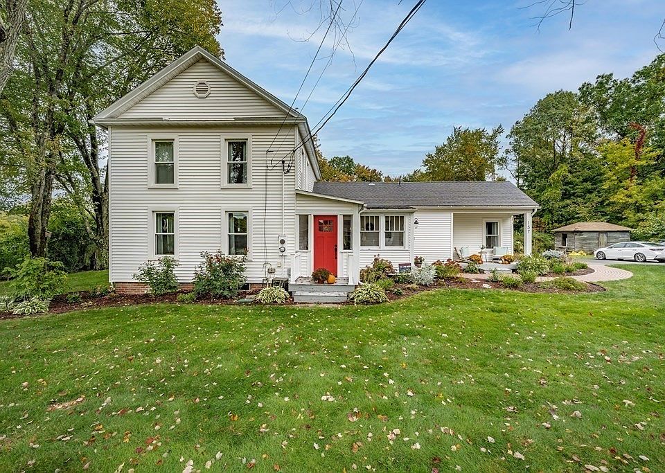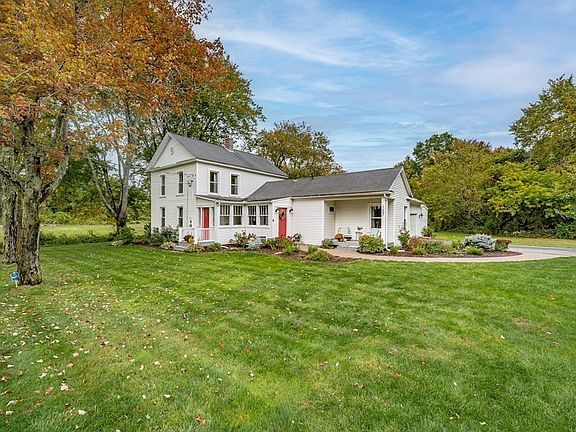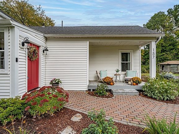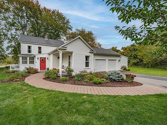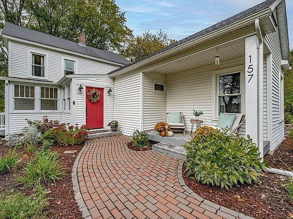 This lovely farmhouse style property features 3 bedrooms and 2 baths approximately 1 mile from the town commons. Upon entering this property you will be greeted with a newer paved driveway with professional landscaping, bright green grass is maintained by irrigation system, the paver walkway and florals give this property a welcoming vibe . Surrounded by the Batchelor brook stony brook trailhead conservation land, the back yard feels like a tranquil oasis. There is a newer patio with a hot tub that will remain for buyers enjoyment and a charming place to sit out by the fire-pit to enjoy seasonal evenings. Enter through the front door and put your belongings in the sun filled porch before you walk into the kitchen that features a spacious island with seating. Sizable living room with separate quaint dining area, two bedrooms on the second floor both with ample space and a 3/4 bath for convenience. First floor bedroom and full bath make this property desirable for many. Simply charming!