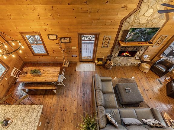 Introducing Hooked on a Feeling, where nature's beauty meets modern rustic elegance. Nestled in the serenity of the mountains, this cabin offers a year-round mountain views, providing a picturesque backdrop that changes with the seasons. Convenient public access to the Toccoa River only a couple hundred yards away, outdoor enthusiasts will find themselves with opportunities for fishing, kayaking and tubing. For golf enthusiasts, the renowned Old Toccoa Farm golf course is just across the street offering a premier golfing experience. Step inside to discover a home that seamlessly blends contemporary comfort with classic mountain charm. The interior boasts a 3bed/3bath plus bunk room, game room, hot tub, 2 fireplaces, granite counters, stainless appliances, tile showers, and only 5.5 miles to downtown Blue Ridge. Being sold turn key.