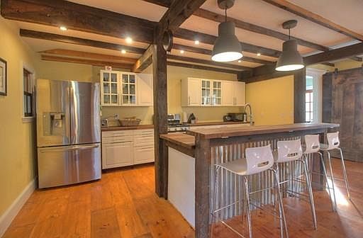 Recently renovated antique colonial. Exceptional large kitchen and eating area boasting SS appliances, updated cabinets, butcher block counters, wide pine flooring and exposed beams. Your friends won't leave this area. Wide pine floors continue through this colonial charmed home. Dining area and living room are large with warm colors. Master bedroom has a vaulted ceiling with exposed beams. Bath is located on first floor along with laundry area. Potential 2nd bath located on 2nd floor. Detached barn is a plus. Use it as a garage or work area and storage is available above. Take the time to view this antique colonial with large lot to create your own landscape dreams.