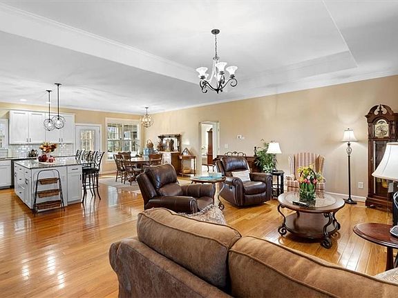 Welcome to this charming brick haven nestled on nearly acre lot. This captivating home presents a perfect blend of comfort and elegance; tailor-made for anyone seeking a tranquil lifestyle. Beautiful kitchen boasts granite counter tops, HUGE center island w/seating, many pullout shelves & open layout ensuring you remain part of the fun times during gatherings. Primary w/trey ceiling, large walk-in, dual vanities, tile shower w/glass door & soaking tub. Main level has 9 ft ceilings, many wood floors, split bedroom plan, convenient separate office area & sunroom that opens to deck overlooking backyard. Actual laundry room w/utility sink. Bonus room on upper level that can function as another office or play area. Oversized garage also has a dedicated storage area ideal for freezer/outdoor equipment/toys. Imagine the memories you'll create on this sprawling property, with ample space to play, garden to cultivate and the simple joys of nature to embrace. Hurry; your dream home awaits!!