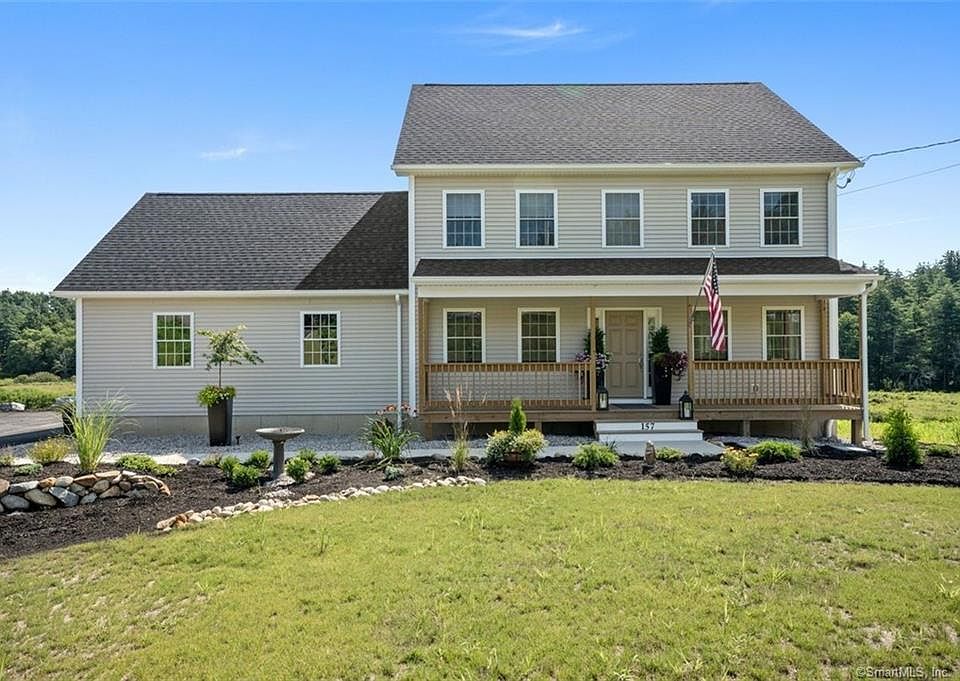 Welcome to 157 Furnace Ave. in Stafford Springs! This 2,282 Sq/Ft Colonial Style has quality construction and a modern design that includes 3 bedrooms and 2.5 bathrooms. As you enter, you are met with professionally landscaped grounds, walkway, and front porch. The hardwood flooring flows through the entire first floor and upstairs hallway. The First level is equipped with an office, a front to back living room/Dining room combination, and kitchen. The kitchen has granite counters, tile backsplash, stainless steel appliances, pantry, ample cabinet space, and a center island with butcher block counters. You will have access to the back deck by sliding doors. Watch the sun rise while overlooking a stream and pond with a picturesque New England view. The second level has a master bathroom with double closets and full bathroom. Additionally, there are two bedrooms, a laundry room, bonus room, and another full bathroom. The full basement is plumbed and ready for another possible bathroom and has walk-out access to the backyard making this basement easy to finish for additional space. This property features Harvey Windows, vinyl Siding, propane Heat, central Air, spacious two car garage, and a radon mitigation system. Come and experience the serenity and beauty this home has to offer! Don't miss the opportunity to make this tranquil retreat your own.