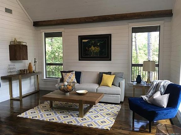 Ultra-modern open floor plan luxury cabin with see-thru fireplace & soaker tub. Nestled on large 1+ acre wooded lot atop picturesque Ouachita Mountains in highly desired Timber Creek Trails South development. Outdoor spaces include lots of covered decks with 2-person hot tub, living area with fireplace, dining & grilling space. First Kiss has excellent rental history & is one of the most rented nightly 1 bedroom cabins in Hochatown. Comes turn-key ready to rent. Close to Beavers Bend & Broken Bow Lake.