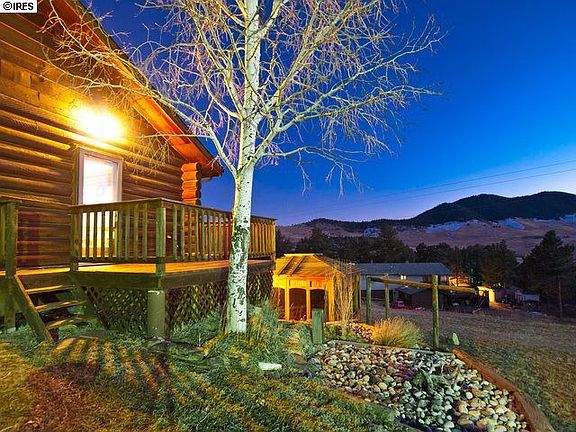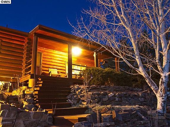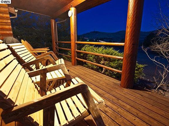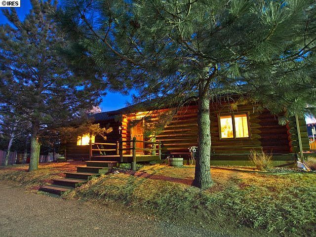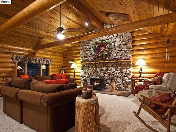 Mountain Englemann spruce log home w awesome garage overlooks lake w hiking. Hot tub gazebo, sunroom, huge moss rock fireplace, vaulted timber-clad ceilings, large storage shed. Main floor master, bath and spare bedroom; two more bedrooms, bath and living area in lower level walk out. Oversized two-car garage sports checkered floor, 30 linear feet enclosed storage, large workbench, drop-down ladder to concealed storage above. Daily wildlife, great views, easy access, 20 minutes west of Loveland.