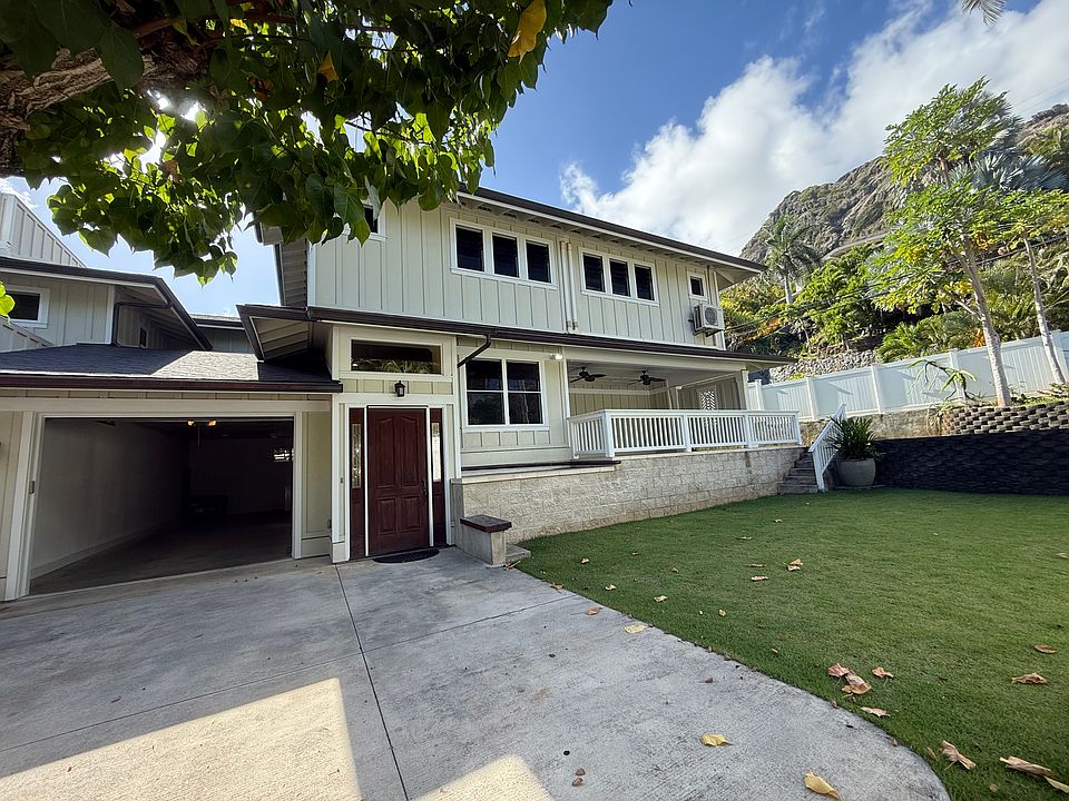 One block from beautiful part of world famous Lanikai beach. 2 or 3 off street parking places. Electric remote-controlled gate for security and privacy. Outside hot water shower for beach rinse off. Large, covered patio for entertaining, includes optional free cable TV hookup for outside viewing. Two story, 3 bedroom 3 and-1/2 bathrooms. Private washer and dryer. Downstairs open kitchen with large granite island, large stainless steel, side by side refrigerator and dishwasher, large stove with oven, under counter chiller for wine, beer, juice, water bottles, etc. custom teak cabinets from Bali, hardwood floors, living room with cable TV hookup, separate space for dining room or downstairs office. Half bath is downstairs for convenience or guests. Upstairs large master bedroom with regular large closet and a walk-in closet. Master bath has his and hers basins and a large walk-in shower with two shower heads for his and her showers. Two smaller guest bedrooms, each with a closet and private bathroom with basin, toilet and tub/shower. All 3 bedrooms are air conditioned. There is a large hallway storage closet as well as other areas for storing seldom used items. Lease is for at least a year, but renewable. Most tenants have stayed multiple years. No smoking and no pets. Monthly rent is 6,400 and deposit is 6,400. Electricity, water, high speed internet, cable TV included at no extra charge Water, electric, cable and internet all included in rent. No pets, no smoking. One year lease with option to extend.