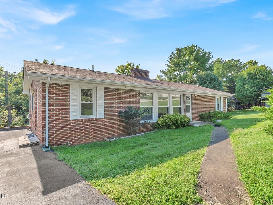 This well-maintained, all-brick home offers convenient main-level living and presents an excellent opportunity for sweat equity with a few more updates. Situated in a prime location near the Tri-Cities Airport and Interstates 81 and 26, it benefits from low county taxes. The main level features 2 bedrooms, 1 full bath, a cozy living room with a brick fireplace, and a spacious kitchen with an eat-in dining area. The lower level includes 2 additional bedrooms, a large den, a full bath, and a laundry room. Some of the more recent updates include a heat pump from around 2015, windows replaced in 2022, a roof updated approximately 12-15 years ago,Spacious lot with no neighbors behind and plenty of space between those on either side.