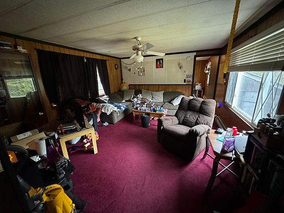 Looking to live on the outskirts with some room to build equity? Come view this 2 bed, 1 1/2 bath mobile on a full foundation with a doghouse dormer basement access which allows for an oil fired Baseboard Hot Water boiler and plenty of storage. The lovely lot offers 5.1 acres with an income producing property included, the Slab which comes with a separate well and septic system was installed in 2002 and is currently rented out.