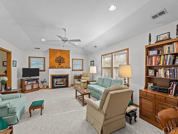 Chicahauk, spacious 3 bedroom, 3 bath home on a huge 23,959 square foot lot.  Immaculate, extra large kitchen with island and a huge amount of counter and cabinet space. At one end is a dining area and the other end is a formal dining room with crown molding and chair rail. Large living room with crown molding and a beautiful gas fireplace. Large master bedroom and the bathroom has a wall mounted heater to take the chill off in the mornings. There are two more bedrooms and a hall bath on that hall. Downstairs there is a large rec room with an office that could double as a small bedroom. Not permitted as a bedroom.  Off the rec room is a small glassed-in Florida room. There is a full bathroom with a regular toilet as well as a urinal. A large utility room. The other end boasts a huge 832 square foot two bay garage with work bench. Vinyl siding, trex style front entrance deck. Ridge Vent. Outside doors have roll down shutters for security. No grass to cut. Desirable circular driveway! X Zone. Look in Associated Docs for Aerial Photos, County Surveys and Permits, Expenses etc. Close to the Chicahauk common area access to Skyline Dr for quick shot to the beach.  Chicahauk has tennis courts, gazebo, soccer and baseball fields. Not far to the Chicahauk Bike Trails. Close to the Market Place Shopping Center, Harris Teeter, shopping, Pizza, restaurants. For $140 per year Chicahauk HOA dues include Tennis Courts, pavilion, Kids play area, Soccer Field, Baseball Field, Picnic Area, canal access and canal side picnic area. Ocean access parking in the Chicahauk beach access parking lot. 150 acres of common area with bike paths and nature trails. In addition, for a low $65 per year the Southern Shores Civic Association lets you take advantage of three sound side marinas with picnic and crabbing areas, Private Sound Beach, thirty-four Private Ocean Beach accesses, parks, basketball and soccer fields. For an additional fee you can join the SSCA tennis courts. EZ to show. Combo lockbox.