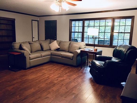 Ranch home in super condition, conveniently located in Holly Hills and Timothy Rd Elementary school system. When you pull up in the drive way you will notice the huge front porch over looking the shaded front yard. As you walk through the front door into the large living room you will notice the stone fire place with builtin book shelves on each side. The newly installed laminate flooring runs through out the main living area with tile in the kitchen and bathrooms. The spacious kitchen features custom cabinets, new counter tops and new appliances. The sun room is a perfect pairing with the huge deck. Just right for entertaining and also low maintenance living.