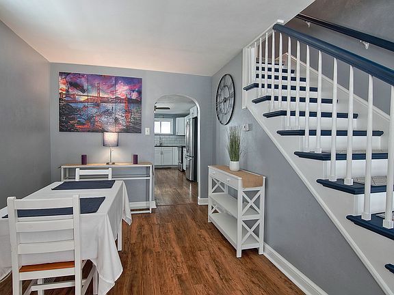 You will be impressed by this nicely updated home. First floor offers living room, dining area, large eat-in-kitchen, sunroom and half bath. Second floor offers 2 bedrooms and a beautiful bath with shower. Third bedroom is on the third floor and is access through the one bedroom. The private backyard is fully fenced and there is a 2 car detached garage for parking and storage. NO pets please and a credit check is required.