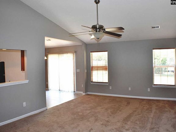 Soaring ceilings abound in this attractive 3 bedroom, 2 bathroom ranch! The entryway, living room, kitchen and master bedroom all have stunning vaulted ceilings that give the whole house an open, roomy look. To increase this sense of openness there is a passâthru from the kitchen to the living room, plus a wide opening between the 2 areas, which makes the main living areas feel as if they are one big room. Add in sliding glass doors that lead to a sunny patio and a big, level backyard, and you have an extremely comfortable space for relaxing or entertaining. The master bedroom is a lovely sanctuary with a vaulted ceiling, en suite bathroom with garden tub, and spacious walk-in closet. Thereâs even an extra wide vanity with space for a stool to make you feel like youâre pampering yourself while youâre getting ready for the day. Thereâs also another full bathroom and 2 bedrooms on the opposite side of the house. Hunters Mill is a great neighborhood that has a community pool and is zoned for White Knoll Schools. Its central location makes it an easy commute to Lexington or downtown Columbia.