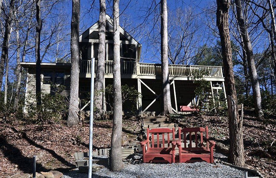 Lake Lure at Rumbling Bald Resort Just Freshened up! Light & bright. Cozy Chalet. One level home with wood burning fireplace. A short walk, bike, or golf cart ride to the Wellness/Recreation Center, pools, and beach. The full unfinished basement offers loads of storage or expansion space and two-car parking. Explore the back yard and find the flowing stream. Updated kitchen with granite and glass tile back-splash, newer appliances, updated bathrooms, waterproof vinyl plank flooring. Two Bedrooms and a Bonus Room currently being used as a third bedroom on the main level. Listen to the stream on your screened-in back deck. Just a short drive to Chimney Rock, Lake Lure beach/water park, The Tryon International Equestrian Center, Asheville, Hendersonville, The Blue Ridge Parkway, and all the best recreation Western North Carolina has to offer. Rumbling Bald Resort POA fee is $3,579.00 per year. Onetime Resort initiation fee of $5,100.00