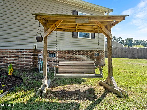 Step inside this spacious home, being sold by its original owners and just 5 years old. Its versatile design was upgraded upon building with several features such as drywall and custom built-ins offering modern family living at its finest. The open concept layout seamlessly blends the living room, a kitchen boasting farmhouse sink overlooking the back yard, central island and high-end Frigidaire appliances, along with a welcoming dining area, creating a harmonious arrangement with a sense of airiness and connectivity. The split floor plan ensures privacy and comfort for everyone in the household. On one side of the living area, you'll find the expansive primary suite, which boasts a spacious bedroom featuring a walk-in glass shower, a soaking tub, two walk-in closets that provide ample space for your wardrobe and storage needs, and dual vanities, ensuring that morning routines are efficient and stress-free. On the other side of the floor plan, you'll discover three additional bedrooms adjacent to a large, conveniently located laundry room and a second full bathroom, which also features dual vanities. Off the dining area, a huge Trex deck offers an ideal space for outdoor entertaining and relaxation. Host family gatherings or bask in the sun by the above-ground pool. Situated on a large cul-de-sac lot, the private fenced backyard is a treasure trove of possibilities. There's ample room for outdoor activities, a 16x20 shed, a dedicated garden area, a playground and even a chicken coop (with which chickens can convey with accepted offer!). There's even a hardwire generator hook-up. This expansive outdoor space is a canvas for your imagination, offering endless opportunities to create your backyard oasis.