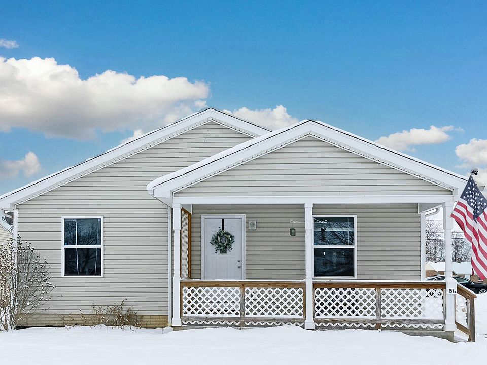 Enjoy all your living space on one level! Offering a warm & inviting Open-concept ranch style home. Kitchen has Granite counters, white cabinets, & Stainless Steel appliances and open to Dinette & Great Room. Primary Suite with Walk-In Closet & Full Bath, Plus 2 additional Spacious Bedrooms & 2nd Full Bath! Main Floor Laundry, Basement, Natural Light throughout, Fenced-in Yard & Back Patio, w/ concrete walkway to detached 2-Car Garage & Covered Front Porch. Walking Distance to town, local restaurants, park & more... Home Sweet Home!