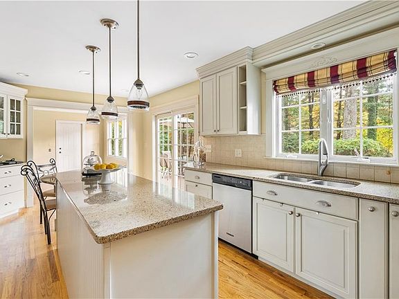This updated and immaculate Colonial is surrounded by park-like, lush landscaping and located on corner .56 acre lot. Updated kitchen with quartz counters and stainless appliances opens to a spacious family room. Sunken living room with fireplace is nicely positioned next to the formal dining room. Recently renovated half bathroom completes the first floor. The 2nd floor offers a large Master bedroom and 2 additional bedrooms. The full tiled bathroom has been updated and includes double sinks and a marble counter. Hardwood floors can be found throughout the home. The lower level includes a family room and laundry and has new flooring, fresh paint and a new full bathroom with shower. A solarium provides unique living space for 3 seasons and opens to multi level ground decking areas --great for entertaining. 2 car garage. Easy access to highway to commute both to Providence and Boston. The first floor family and dining rooms have been virtually staged.