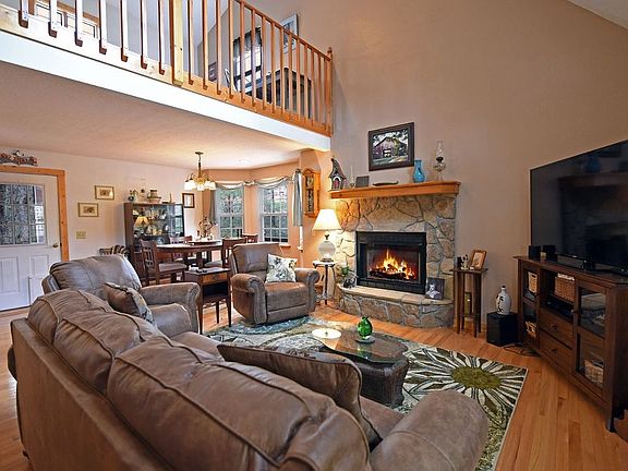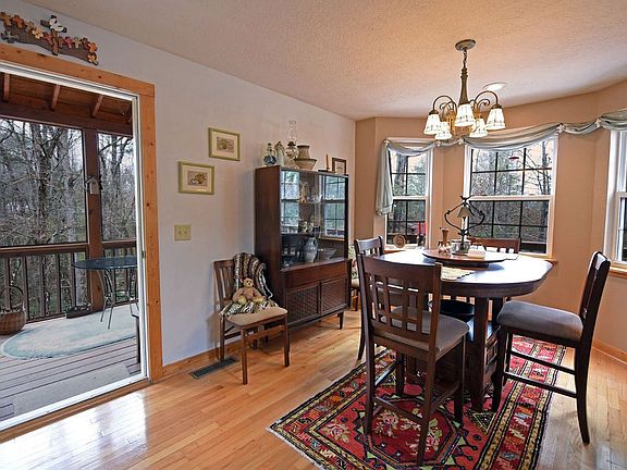 Simple Mountain Living. This delightful cabin styled home offers 3BR/3BA plus loft. 2 Master suites! Open great room w/ a mix of sheetrock & wood. gas log fplc, bayed dining area, wood floors, Open Loft w/ Antique built in stained glass Windows. Lots of Light. Furnished!!! Laundry on the main floor. Private screened porch w/ wrap deck to front covered porch. Drive under 1 car garage. Lower level has a finished bedroom, bath plus workshop space. Room for expansion! Lower patio. multilevel parking. Gravel circular drive. Approx 7 miles to town. Close to Lake Nottely. Development with just a few homes.
