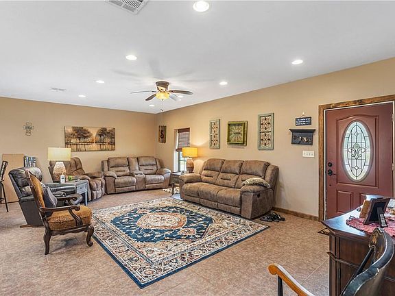 Enjoy peace and quiet in this 3bd/2ba home nestled on a half acre lot out in the country. Open Floor plan, nice sized bedrooms. The master bath has a nice walk in shower that is wheel chair accessible. Both the front porch and back porch are spacious and make an excellent place for entertaining or lounging. Property also includes a 30x30 work shop on a slab.