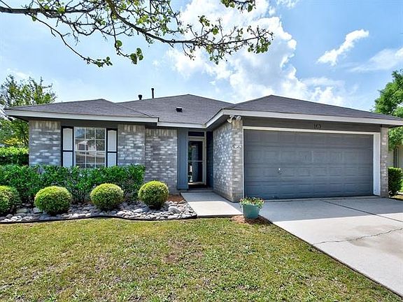 This Steeplechase home features an open floor plan, vaulted ceiling, kitchen w/ ample cabinetry, storage, and breakfast bar. Master suite w/ full bath, walk-in closet and natural lighting throughout! Retreat to the spacious backyard with a relaxing green space, open deck and storage building. Very convenient location! Easy access to great schools, I35, shopping and restaurants! No HOA!