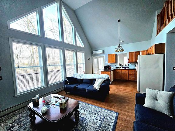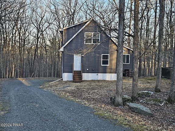 INVITING MOUNTAIN CHALET with floor to ceiling windows for natural light to fill the open floor plan. Home is situated to face the green belt for added privacy & scenic woodland views. This Masthope charmer features three bedrooms, sunroom, stone-faced fireplace; AC split unit and a recently finished basement for expanded living space. This Chalet is the perfect blend of charm and functionality. Enjoy the picturesque views from your deck and convenience of community water & sewer. Welcome home to your mountain retreat!