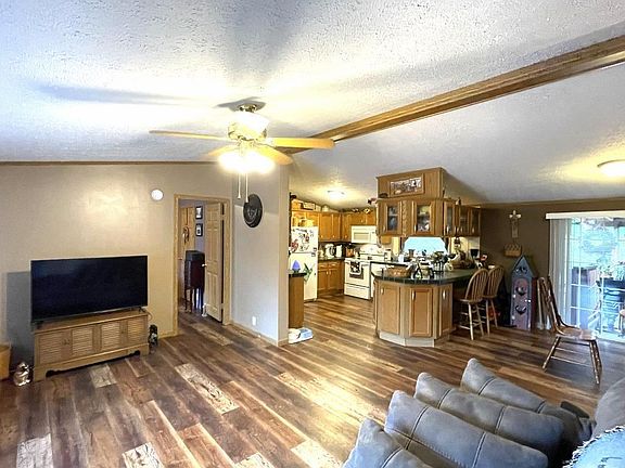 Beautiful well maintained Doublewide Home sitting on a permanent foundation. Located only about 9 miles from town in a peaceful county setting. Home has an open concept with large living room, dining area and kitchen with lots of cabinetry. Nice size Master bedroom with large master bath located on one end of the home and 2 additional bedrooms and full bath on the other, separate laundry room and spacious bonus room that could be used as a Home office or 4th bedroom. Enjoy the front porch perfect for relaxing and overlooking the large yard that has wildlife that frequently visits the property. Back covered porch that is accessible through the dining room and a 1 car carport. * New Floor covering added 2021, New carport added 2020, New Heat/air 2017. Make this a must see on your list. Call today for a showing.
