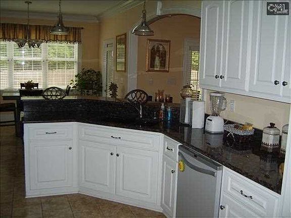 Custom built home in private community near downtown Columbia; Master Bed. w/vaulted ceiling, whirlpool tub, separate Italian marble shower, 2 separate vanities, walk in closet; Dining room w/moldings and hardwood floors; great room w/hardwood floors, vaulted ceiling, entertainment center, fireplace w/gas logs; eat-in kitchen opens onto covered rear porch w/stamped concrete, breakfast bar, granite countertops, and tile floor; split floor plan with two guest bedrooms and guest bath; large FROG; laundry room; two inch wood blinds, huge double garage; privacy fenced rear yard with well for 12-zone irrigation system,zoned HVAC; programmable lighting; storage shed with electricity.