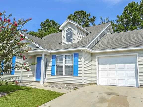 3 bedroom 2.5 bathroom traditional style home for sale in Stono Village @ Hunters Ridge. Located just off Panthers Pkwy - in the Forestbrook section of Myrtle Beach - this home features 1252 heated square feet, an attached 1 car garage, and a private fenced in backyard on a prime .13 acre cul-de-sac lot. Home has NEW neutral grey paint throughout, NEW stainless steel Samsung appliances, and one of the homes two HVACS was replaced in 2014. NEW water heater in 2019. Walking through the front door, you come into a small entry way and the first thing you notice is the spacious open floorplan and large amount of natural light coming through the home. Living room has vaulted/cathedral ceilings, carpet, overhead ceiling fan, and a half bathroom perfect for guests. Master bedroom is on the 1st floor - just to the left when you walk in and also has a vaulted ceiling, carpet, and an overhead ceiling fan. Master bathroom en-suite is equipped with a walk-in shower with glass door, double sink bowl vanity, large garden tub, ceramic tile flooring, and a spacious walk-in closet. Kitchen & dining area sit toward the back of the home and features ceramic tile flooring, NEW stainless steel appliances, plenty of cabinet/counter space, and a window above the sink with views of the private backyard. Door access to 1 car garage is just off the dining area and has washer/dryer hookups, full size water heater, & overhead garage door opener. Upstairs features two more large spacious bedrooms with plenty of closet space, carpet, & overhead ceiling fans - which are separated as a split bedroom floorplan with a full bathroom in-between. Second full bathroom has a single sink bowl vanity, ceramic tile flooring, & a tub/shower combo. This home in Stono Village @ Hunters Ridge is priced to sell and will not last long - community features a low quarterly HOA and community pool in one of the most desired areas of Myrtle Beach. Perfect starter home or investment property - schedule your private showing today!