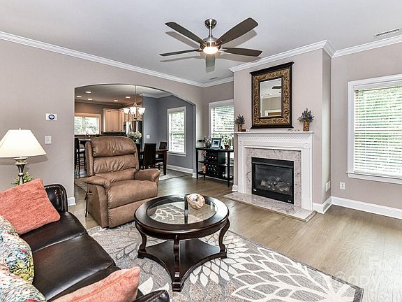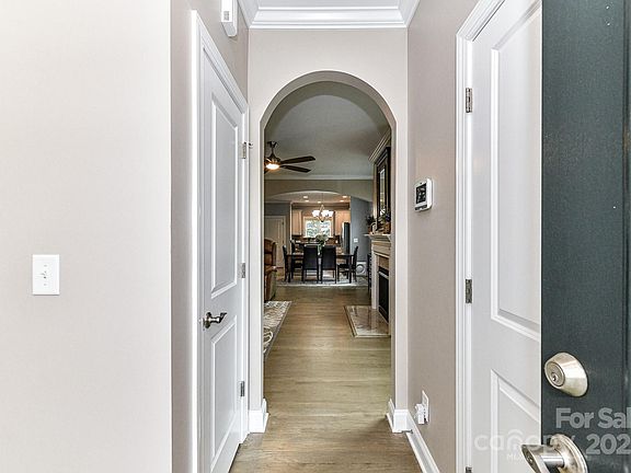 Meticulously maintained end-unit townhome in Johnson Manor of Mooresville. Primary bed on main and no steps going into the home! This 3 BR, 2.5 bath unit has had significant upgrades in last 2 yrs. Freshly painted w/ neutral colors. Refinished hardwoods on lower level & new LVP flooring in primary bedroom, stairs & upper level. New subway tile backsplash in kitchen & new Bosch dishwasher. Hearth around great room fireplace was replaced w/ marble. New ceiling fans & zebra dual roller blinds on doors. Extended covered patio into backyard & sodded rear yard. Patio & fenced rear yard offer privacy, beautiful landscaping & back up to fantastic community garden. End unit on corner gives additional privacy & great light. Two car garage w/ ample storage & dropdown attic access for more storage. 2 BRs, 1 full bath, bonus rm & large walk-in closet upstairs. Feels like new. This active living community is in a great location, close to a grocery store, gas station & shops just across the street.