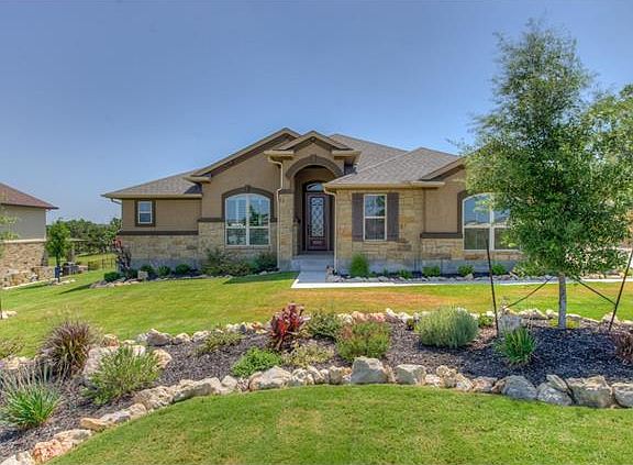 Well-appointed, single-story, 4BR/2.5BA home nestled on 1+ acres with plenty of room for friends and family. A welcoming entry opens to arched doorways and gleaming hardwood floors. The spacious and open floor plan offers a grand living area and two dining areas. Gather around the dream kitchen with plentiful counter space and cabinets, large pantry and center island. Master suite has a great walk-in closet and private entrance to back patio. Cozy gated community. Highly acclaimed Liberty Hill schools.