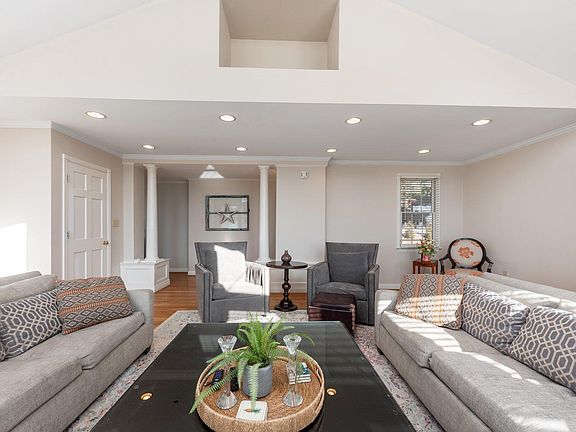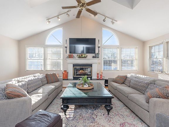 - Walk-In Closet(s), Track Lighting, Storage, Smart Thermostat, Pantry, Granite Counters, Entrance Foyer, Eat-in Kitchen, Dry Bar, Crown Molding, Chandelier, Bookcases, Breakfast Bar, Built-in Features, Ceiling Fan(s), High Ceilings, Natural Woodwork, Recessed Lighting, Vaulted Ceiling(s), Wet Bar