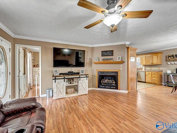 - Features: Ceiling Fan(s), Crown Molding, Fireplace, Scored Conc Fl, LVP