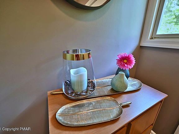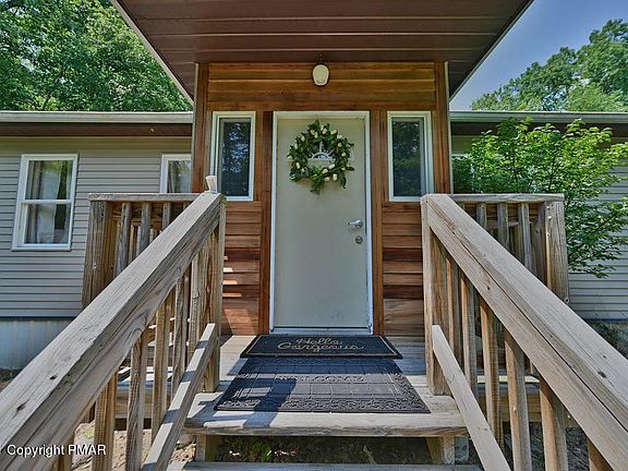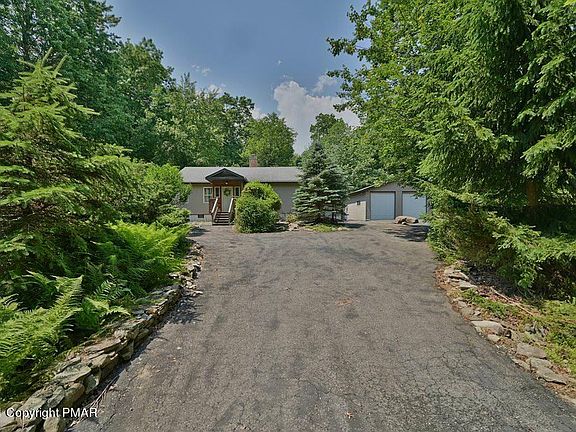 Adorable 3BR/2BA ranch home tucked away on two peaceful wooded acres in low dues-low key community. A cathedral ceiling and parquet flooring bookend the cozy living room space featuring an appealing brick floor-to-ceiling wood burning fireplace. Hardwood flooring runs throughout the home, except in both bathrooms, where ceramic tile is the material of choice. Outside enjoy the deck overlooking the back yard, where you'll find a large fire pit area and a creatively built tree house complete with swings, surrounded by woods. Other features: attached 1-car garage and expansive 25' x 30' detached garage, a multi-purpose storage bonus. Call for details.