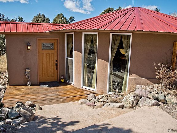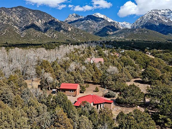 Charming "round" house backing to South Crestone Creek Greenbelt! This is a 1 bd/ 1 ba 999 sq ft home on a consolidated 1.036 acre desirable Chalet I private lot, just 2 houses from the Baca park/playground. Set backed up to the South Crestone Creek with its rushing creek, lush trees and trails. Set deep off the paved road: from the back patio no other homes can be seen. Enjoy overlooking the greenbelt with its variety of trees, creek, and meadow. Wander out the back gate and traverse along the South Crestone Creek trail. Great for dog walks! This home offers possibly the best Crestone dog yard as almost a 1/3 acre is safely fenced for your furry friends with large vehicle sized gates at front and rear of property. Enjoy the back patio listening to the rushing creek or cozy up to a fire to view the moon and Crestone's Dark Skies. Custom 288 sq ft "barn" sits within the private yard w/ large windows, drop down stairs to a loft and a separate caged area to secure your gardening tools/etc. The potential is great to be used as a studio, She Shed, storage, workshop or finished for additional living space. This one bed/ 1 bath home offers charm though out with warm natural colors and pine wood gracing this open floorplan "round" home. Featuring a light greatroom, with vaulted pine wood ceiling, central skylight, large south facing windows, and in-floor radiant heated concrete floors. The kitchen with custom cupboards,/drawers, Boos Butcher Block cherry counters, and Granite will appeal to most chefs. The large bath offers, two sinks, custom rock floored shower w/ window and bench(large enough for two to watch the moon . A laundry/utility closet is conveniently off the bath. Plenty of storage with 2 large closets and extra shelves. All furniture and many furnishings are negotiable including King size bed, antique dressers, antique oak round table, and two 140 yr old solid oak hutches! Potentially a Fabulous Air BnB ready to go. Broker owned. Call for details!