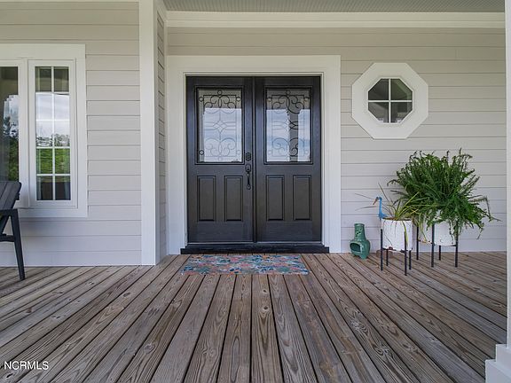 You've found a true picture of southern charm just minutes from the ocean at Holden Beach! Set back from the road, on 9.37 acres of land is an updated modern farmhouse with a true wrap around porch. With all the acreage located in an X flood zone and about half of the acreage wooded, it's private yet convenient since it is less than a mile from Highway 17. As you pull into the driveway the scene welcomes you home. The pond to the left says hello while the 50 amp RV hook up at the front of the property immediately adds another level of functionality to the sprawling property.