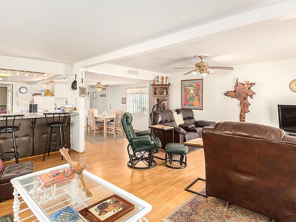 One of a kind manufactured home with multiple additions and upgrades. Fully Furnished turn key home! Well maintained and from the exterior may be deceiving, but when you step inside you will be pleasantly surprised by the large open space. Upgraded oversized kitchen with extra cabinets, open great room floor plan. Several additions have been made to the original structure not showing on the tax records, adding additional living and other usable space. The original home was a single wide 2 bedroom, however there is now expanded kitchen, living room, 3rd bedroom/den, fully enclosed Arizona room with windows and separate exit, covered screened in front patio and a large workshop off the carport. Fully fenced lot, no HOA, detached storage shed. Why pay park fees, own you land, store your toys.