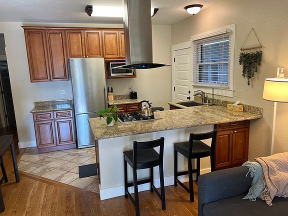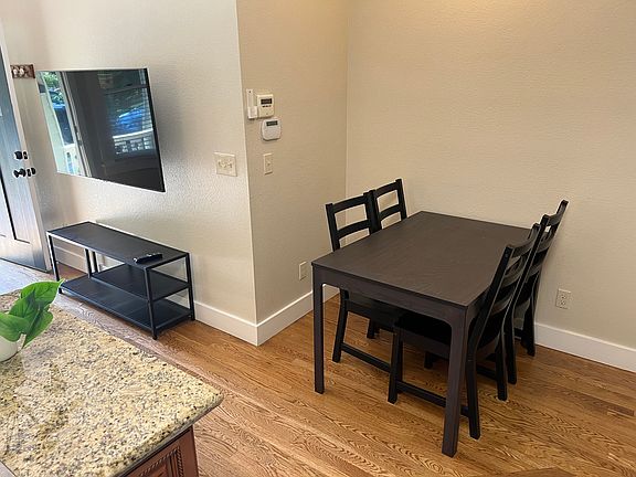 FURNISHED APARTMENT. READY TO MOVE IN. INCLUDES ATT FIBER WIFI. Remodeled one bedroom apartment. Kitchen include refrigerator, dishwasher, gas cooktop, electric oven and microwave, Heating and air conditioning unit in living room and bedroom. You pay for PGE. Six month lease minimum. Max TWO people. Tenant pays for PGE. Landlord water, garbage, sewer, gardener. Minimum six month lease. NO pets. Background check $30 through TransUnion. Street parking.