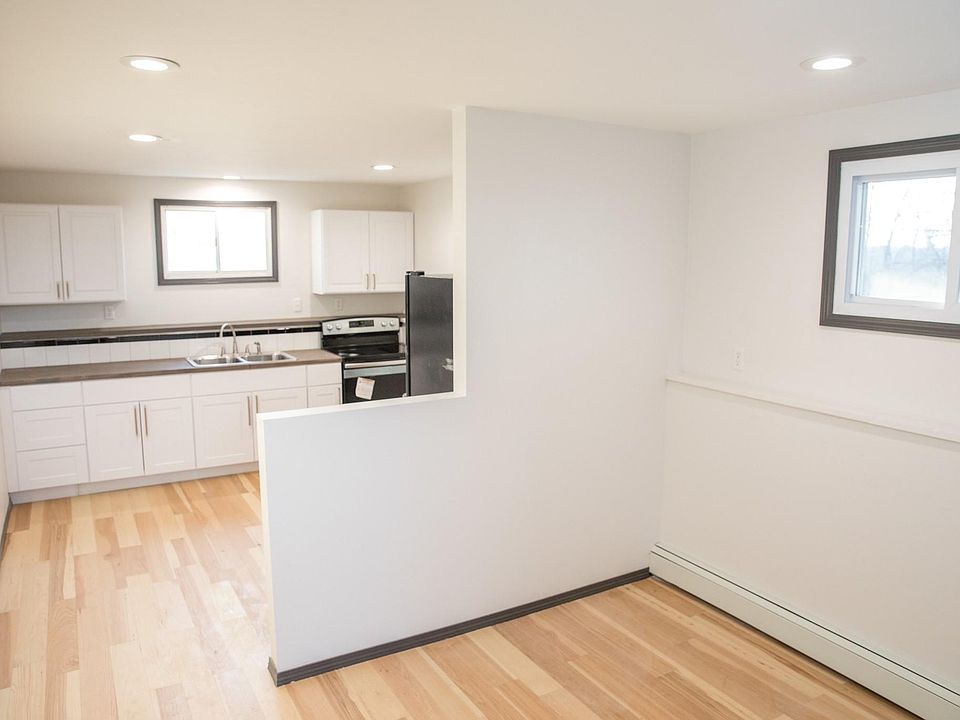 Large, newly renovated 1br/ba apartment now available. New flooring/carpet throughout, new kitchen, new bathroom. Updated lighting for a bright atmosphere and new furnace to keep you warm. Washer/Dryer hook ups. Quiet, residential neighborhood. Centrally located near downtown Watertown, restaurants, and breweries Also minutes from shopping, Jefferson Community College, Fort Drum and I-81. Off-street parking behind structure. Large grass lawn on corner lot for outdoor activities. Snow removal and lawn maintenance provided by owner. Tenant responsible for all utilities and trash/recyclable pick-up