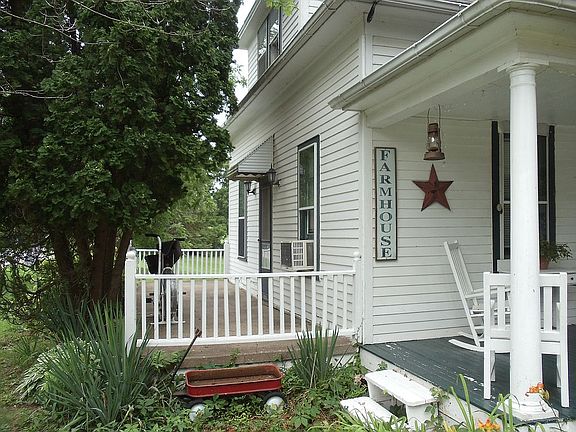 Two bedroom Home in the Country for Sale, Galena IL. 157 Pilot Knob Rd., Galena IL for Sale. Two bedroom, 1 bath home offers additional outdoor living space, with an enclosed 3-season porch, an open porch area and cement patio. Walking into the enclosed porch area you step into the quaint kitchen, with lots of cupboards for all your cooking supplies and storage. Off the kitchen, will come upon the dining room and living room offering hardwood floor, which leads you to the full bathroom which is on the main level. Access to bathroom is either from the kitchen and or the living room. Laundry is on main level. Upstairs you will find the 2 bedrooms, with master having a long walk in closet ( 27' x 6'.) Storage is abundant as there is an additional storage closet and spacious attic space. Outside you will find the Lovely large yard, outbuilding and a carriage house that has room for one car/ work shop area( 11' x 22'), with abundance of space on the upper level ( 14' x 22') and some under as well. Treed to the rear of the property. Close to Casper Bluff Preserve, Chestnut Mountain Ski Resort and the Galena Bike Trail for outdoor activities and minutes from downtown Galena. New well drilled, well casing and tank in 2019. Septic tank and field,( rated for additional bedroom) installed 8 years ago. Water heater 5 years old. Come take a look at this Galena Country home, that feels like home. Square footages are approximates, There are 2 survey stakes in the front portion visible with the rear ones there as well. Aerial is estimated boundary lines NOT A SURVEY. Selling AS-IS, Seller indicates everything works as it should. Most Photos provided by Seller. Seller plans on leaving: 2 beds, 2 dressers,2 couches and TV Stand on separate bill of sale.