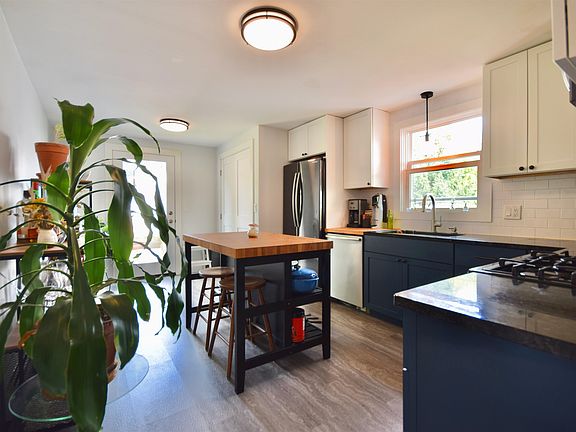 This charming home has been thoughtfully updated over the years, all while preserving its original character and appeal. Situated on a corner lot, it offers a spacious, fenced-in yard, just a short stroll from downtown. Step inside through the new mudroom and into the inviting open-plan living and dining area. The fully renovated kitchen is sure to catch your eye, featuring shaker-style cabinets, beautiful granite countertops, stainless steel appliances, and a subway tile backsplash. A door off the kitchen leads to the landscaped backyard, perfect for outdoor enjoyment. Convenience is key with first-floor laundry, a bedroom, and a full bath all on the main level. Upstairs, the preserved staircase takes you to a second bedroom with a walk-in closet. The unfinished basement provides ample storage space. Outside, a shed offers room for outdoor equipment, and the covered front porch is perfect for relaxing. The spacious and private side yard, complete with flower gardens and a patio, is ideal for enjoying summer days and entertaining guests. Located near the interstate, hospital, UVM, Lake Champlain, schools, restaurants, parks, bike paths, and beaches, this home puts everything Burlington has to offer within easy reach. Enjoy the comfort and ease of living in this move-in-ready downtown gem!