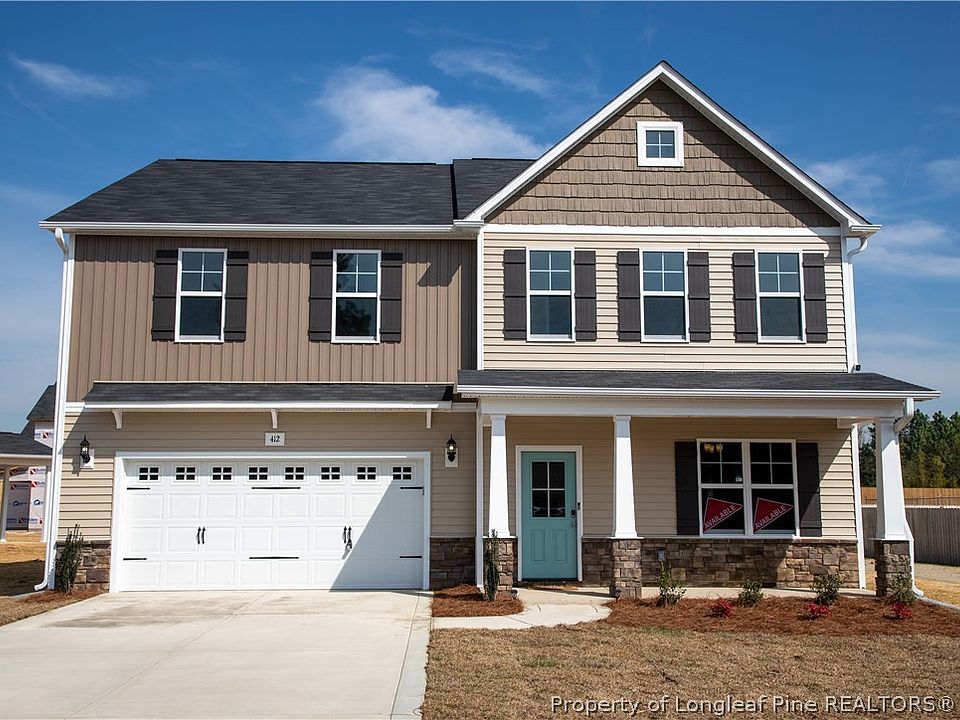 The Ambrose by Furr Construction features 4 bedrooms and 2.5 bath with an open floor plan. Upon entering the home, you are greeted with a large foyer. A beautiful formal dining room with coffered ceilings & wainscoting. A butlers pantry connects the formal dining with the spacious kitchen. The Kitchen offers a large center island, granite countertops and a breakfast nook. Access to the covered porch/grilling area is located right off the breakfast nook. The Kitchen overlooks the large family room that features a fireplace. The Owners suite is located on the second floor with a tray ceiling and has TWO walk in closets. The en-suite bath offers a double vanity, garden tub with a separate shower. You will also find the other 3 bedrooms located on the second floor, each bedroom having its own walk-in closet. A full bath with two separate vanities and the laundry room is also located on the second floor. Currently Under Construction.