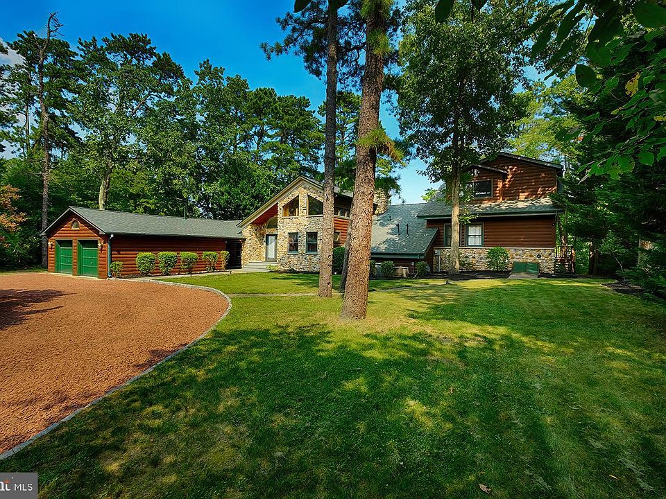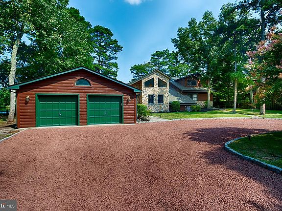 Welcome to 157 Narragansett Trail, a charming retreat nestled in the heart of Medford Lakes, NJ. The home is architecturally designed with may unique features not found in other homes in Medford lakes, perfect for entertaining virtually any sized group (small or large.) This delightful lakefront log cabin has 3-4 bedrooms, 2.5 baths, a generous 2,951 square feet of living space, perfectly situated on almost a half acre lot, providing ample room for relaxation and outdoor activities. Step inside to discover a warm and inviting atmosphere, featuring a spacious 2 story great room with original logs and adorned with a cozy stone fireplace, perfect for those chilly evenings. A wall of sliding glass doors provide you with amazing lake views. The well-appointed kitchen comes equipped with modern appliances, ensuring meal prep and entertaining are a breeze. With wide plank pine flooring, walk in pantry, and center island eating area. Adjacent to the kitchen, you'll find a convenient laundry area with both a washer and dryer included. This mud/laundry room has a separate entry and pathway to easily unload groceries, a large built in pantry, and access to the wine cellar. The main floor office/family room/4th bedroom has an oversized desk and an upper loft library with built in bookshelves. The primary bedroom is a tranquil haven, complete with an ensuite bathroom for added privacy and pocket door entry. The shower and tiling are newly installed. The primary suite also has a large walk in closet, and balcony overlooking the lake. Two additional bedrooms and a full bath are on the main level and also boast the wide plank pine flooring. The wine cellar has a seating area, pocket door, and Bilco door entry. The 2 car garage has heat and AC as well as a separate entry office/workroom with heat and air. There is also a 1/2 door entry to this office, great for entertaining. Outdoor enthusiasts will appreciate the numerous amenities available, including access to a private dock, the lake, perfect for summer fun. For those who love to stay active there is swimming, fishing, paddle boarding, and canoeing. A spacious deck provides great water views, as well as privacy with the oversized rhododendron bushes that have gorgeous, vibrant blooms in the spring. Set back from the road with mature trees and tasteful landscaping. In addition to the garage, there is an oversized fully circular driveway that can fit 10+ cars, providing plenty of off street parking. Bluestone pavers lead to the double door front entry. The exterior also has newer staining, newer roof with newer skylights. Don't miss the opportunity to make 157 Narragansett Trail your new sanctuary. Schedule your showing today and experience all that this exceptional lakefront home has to offer!