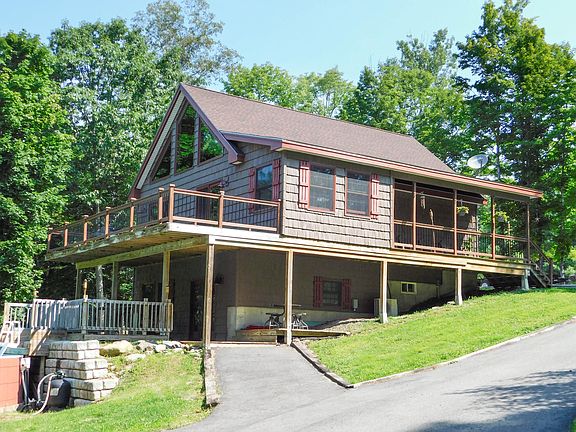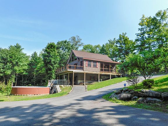 If you have ever dreamed of having an amazingly beautiful post and beam chalet style home as your own, here is your opportunity. This custom built home sits up high off the road and offers 3/4 bedrooms, 2.5 baths, 20' cathedral ceilings and beautiful large windows offering sunset colors and seasonal mountain views along with so much more! Upon seeing this home, you will notice the attention to the many details, from the custom woodwork and the hickory cabinets to gleaming granite countertops throughout the home. As you enter through the covered farmers porch, you will relax in the warm and inviting open concept layout of this beautiful, meticulously kept home. Take off your shoes, hang your hat in the good sized mud room, then enter the home which offers a beautiful kitchen with all stainless steel appliances, beautiful light fixtures and granite countertops. The living room has large beautiful windows, a cathedral ceiling and access to the large deck overlooking the pool area, then round out the first floor with two good-sized bedrooms and a full bath. As you go upstairs to the loft, you will see the beautiful master bedroom with sliding barn doors and its own adorable bathroom as well as an additional area which could be for reading or office space. Downstairs in the lower level, you'll find an added In-Law apartment with its own kitchen, storage space, bedroom, bathroom and a separate entry, along with the utility room. Radiant heat is throughout the home and the heat pump will provide cooling on those hot summer days! Enjoy the 24' Crestwood above ground swimming pool and deck, newly paved driveway and the large 24 x 32 two car garage, which has storage space overhead as well as an additional storage area on the side. Add the Generac whole house generator and the Ring Security System and this property has it all. If you're an outdoor enthusiast, the property is located on an ATV friendly road, and the trail is located only minutes away.