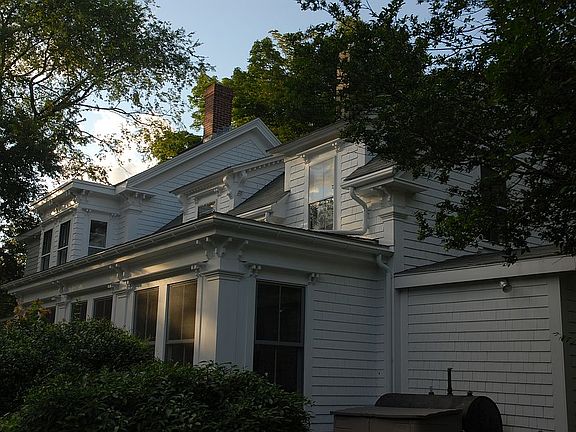 The property consists of two residential buildings and a detached garage on a corner lot. The main house is described here was used as an inn until 1975. Walls were removed to increase the size of the bedrooms. The ceiling of what is now the eating area was removed creating a two story space with the previous hallway serving as a balcony and opening up a loft room. A heat pump system provides heating and central air conditioning and there is 13.3 kW of solar panels on the roof. The second house is an 1100 square foot guest house with one bedroom, wide interior door openings, a cathedral ceiling living room, skylights, and full basement. It has heat pump central heating and cooling. It has a gas fired fireplace in the living room and a backup generator. Ideal rental property in a primary vacation community.